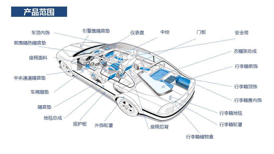 汽車內(nèi)飾作為公司重要的支柱產(chǎn)業(yè),產(chǎn)品涵蓋汽車坯毯、成型毯、頂棚面料、座椅面料 、安全帶等,是奔馳、寶馬、大眾、通用等國(guó)內(nèi)外主要汽車廠商值得信賴的供應(yīng)商。